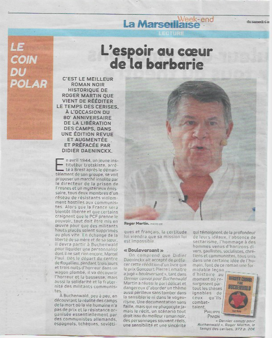 Un bel article paru dans La Marseillaise Week-end autour du roman noir historique de Roger Martin, à l’occasion du 80ᵉ anniversaire de la libération des camps.